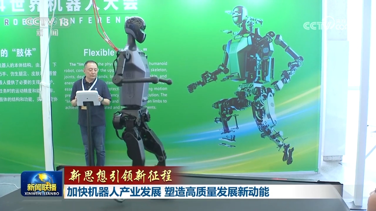 您现在看到在跑步机上以每小时6公里的速度稳定奔跑的机器人是由北京具身智能机器人创新中心研发的,这款全球首例能够拟人奔跑的纯电驱全尺寸人形机器人还能作为母平台进行灵活扩展和迭代,满足不同场景应用需求。在本次世界机器人大会上,169家全球头部企业带来600多件(套)创新产品,其中,首发新品60余款,还有来自10多个国家的7000多支队伍进行竞赛。 机器人被称为“制造业皇冠顶端的明珠”,是一个国家科技创新和高端制造业水平的重要标志。习近平总书记指出,“机器人革命”将影响全球制造业格局,我国将成为全球最大的机器人市场。我们不仅要把机器人水平提高上去,而且要尽可能多占领市场。 2015年,习近平主席向首届世界机器人大会致贺信表示,我们愿加强同各国科技界、产业界的合作,推动机器人科技研发和产业化进程,使机器人科技及其产品更好为推动发展、造福人民服务。