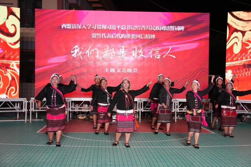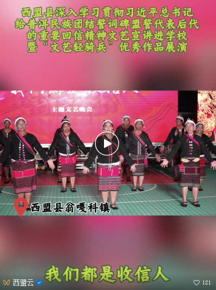 编者按 为深入学习贯彻习近平总书记给普洱民族团结誓词碑盟誓代表后代的重要回信精神,进一步引导全县广大干部群众把思想和行动统一到重要回信精神上来,共同当好“收信人”。12月9日-18日,西盟县深入学习贯彻习近平总书记给普洱民族团结誓词碑盟誓代表后代的重要回信精神“文艺轻骑兵”小分队宣讲将进农村、进基层、进企业、进校园、进军营、进社区、进乡(镇),让习近平总书记的重要回信精神传遍西盟佤山,引导全县各族人民把中华民族共同体意识牢记心间、融入血液,共守祖国疆土、共建美好家园,让民族团结进步之花越开越绚烂。