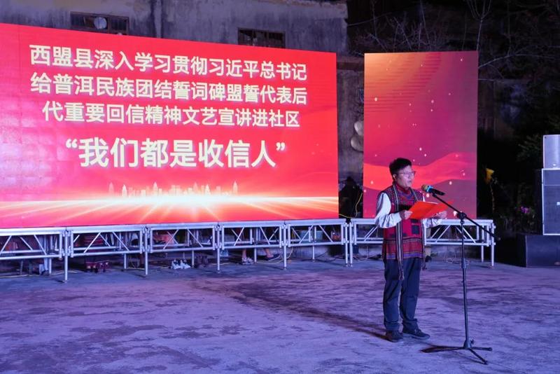 “今天再次学习习近平总书记的重要回信精神,我非常感动。身在边疆少数民族地区,我对民族团结的感受更加深刻。今天的宣讲和演出,让我们更加了解本地的红色历史。作为一名社区群众,我也将尽自己所能,积极宣传民族团结红色故事,让民族团结之花在身边越开越灿烂。”勐卡社区商业片区居民娜朵说。