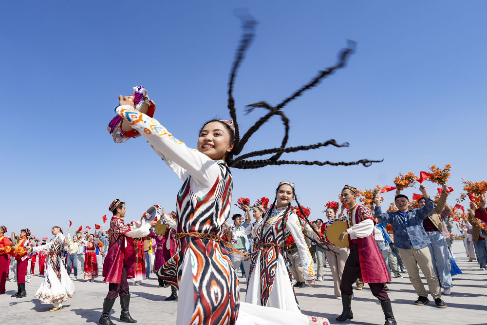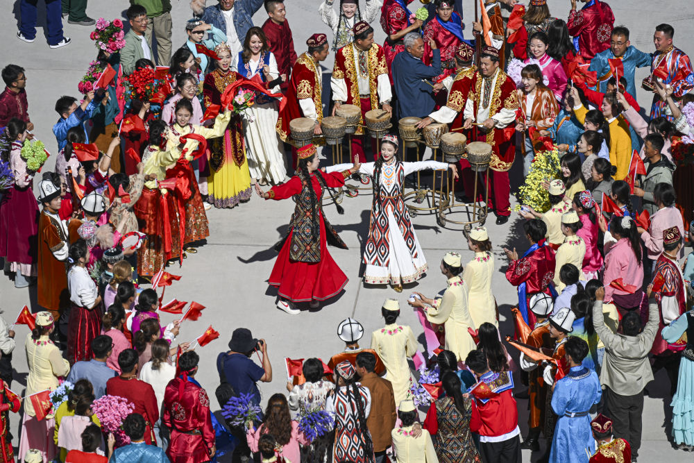 砥砺奋进七十载,天山南北绽新颜。 9月23日,中共中央总书记、国家主席、中央军委主席习近平率中央代表团抵达乌鲁木齐,出席新疆维吾尔自治区成立70周年庆祝活动。 石榴咧嘴柿泛红,正是秋实好时节。连日来,习近平总书记日程满满,步履不停,参加出席多场活动。总书记的关心关怀令新疆各族干部群众备受鼓舞、倍增干劲。 新华社记者的镜头里,各族儿女簇拥在一起,欢笑在一起;明艳的服饰、热烈的歌舞,无不展现出团结与奋进的力量。 23日14时20分许,习近平总书记乘坐的专机在天山国际机场降落,等候在停机坪的新疆各族各界群众热烈欢呼。习近平总书记走出舱门,向欢迎群众挥手致意。习近平总书记走下舷梯时,少先队员献上鲜花。 各族群众代表身着民族服饰,载歌载舞,欢迎习近平总书记的到来,表达对总书记的衷心祝福。 乌鲁木齐市充满节日的喜庆氛围。从机场到住地途中,习近平总书记向沿途群众频频挥手、亲切致意。 各族群众手持红旗,齐声欢呼,表达欢迎和感激之情。 23日下午,习近平总书记接见新疆各族各界代表,代表党中央向新疆各族儿女致以诚挚问候和衷心祝愿,希望大家凝心聚力、团结奋进,在中国式现代化进程中更好建设美丽新疆。 24日上午,习近平总书记在乌鲁木齐文化中心展览馆参观新疆维吾尔自治区成立70周年主题成就展。该展览全景展现了70年来在中国共产党坚强领导下、在全国各地大力支援下,新疆各族人民团结一心、艰苦奋斗、顽强拼搏取得的辉煌成就。 24日晚,庆祝新疆维吾尔自治区成立70周年文艺晚会《美丽新疆》在乌鲁木齐文化中心大剧院举行。习近平总书记同新疆维吾尔自治区各族干部群众共同观看演出。 演出共3个篇章,展现新疆社会主义建设的火热场景,表现改革开放给新疆带来的蓬勃生机,描绘新疆各族儿女同心筑梦新时代的美好图景。 25日上午,习近平总书记在乌鲁木齐市出席新疆维吾尔自治区成立70周年庆祝大会,同新疆各族各界干部群众代表一道,热烈庆祝新疆维吾尔自治区成立70周年。 25日中午,习近平总书记乘专机返回北京。在乌鲁木齐市区和机场,新疆各族群众热情欢送总书记。 天山雪松根连根,各族人民心连心。广袤的新疆大地上,各族群众赓续团结基因,民族团结之花处处绽放,铸牢中华民族共同体意识日益深入人心,“像石榴籽一样紧紧抱在一起”已经成为新疆民族团结的生动实践和真实写照。 摄影:毕晓洋 谢环驰 姚大伟 张领 燕雁 丁林 申宏 李琰 胡虎虎 辛悦卫 陈斌 王鹏 编辑:毕晓洋 虞东升 许睿 新华社摄影部、新疆分社联合制作 新华社第一工作室出品 |