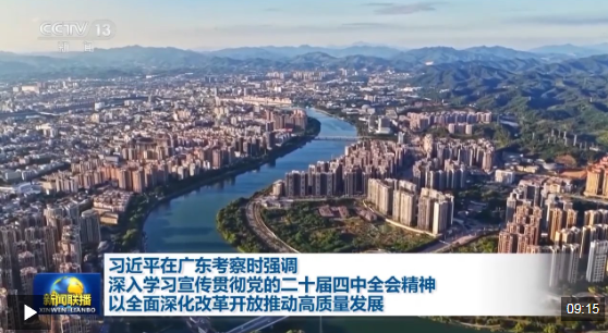 △金柚成为乡亲们的致富果。(总台记者李晋拍摄) 一座村庄的变迁,照见中国高质量发展的大图景。 高质量发展,是“十五五”规划建议确定的中国未来五年经济社会发展的主题。“排头兵”广东如何在高质量发展中增创新优势、实现新突破? 总书记在8日的汇报会上强调,必须大力弘扬改革开放精神、特区精神,以全面深化改革开放推动高质量发展。 “建设具有国际竞争力的现代化产业体系”“稳步扩大制度型开放”“既促进本地产业转型升级,又带动中西部地区产业发展”……一系列要求,体现出总书记对广东走在前、作示范、挑大梁的殷殷期许。