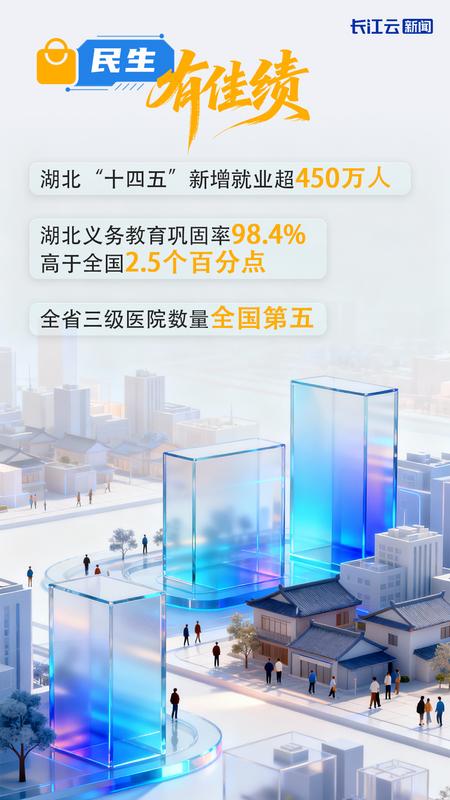在湖北,五年民生答卷里记录下一份份奋斗的足迹—— 百姓生活日益改善——湖北民生支出占地方一般公共预算支出比重保持在75%以上。 精神生活日益充实——全省共建成公共图书馆119个、博物馆245个、数字农家书屋2.3万多个。 城市面貌日益改善——“十四五”期间,湖北12个城市获评第七届全国文明城市,数量居全国第五。 乡村发展日益振兴——2024年,农村居民人均可支配收入22580元,较“十三五”末增长38.5%。 今年是“两个一百年”奋斗目标的历史交汇点、两个“五年规划”的发展交汇点,湖北将牢记嘱托,深入学习贯彻党的二十届四中全会精神,谋深做实即将出炉的“十五五”规划,把全部工作向“支点建设”聚焦聚力,将“支点建设”的旗帜举得更高更稳,努力把总书记为湖北擘画的宏伟蓝图变成美好现实! 总策划:岑卓 总监制:何伟 监制:洪燕 编审:康耀方 邓国辉 李桓 邹敏 统筹:罗峰 撰稿:刘蕊俊 美编:石璐茜 王子煊 蒋艳 邱方蕾 |