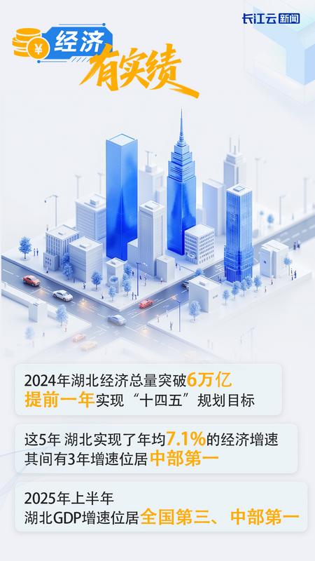 “这里经得住疾风骤雨,未来更是一片光明。”2024年11月,习近平总书记来到湖北考察,他的期许,是奋进的号角。 五年来,中部地区发展站到了更高起点上。 2025年2月19日,湖北“新春第一会”打响新一年加快建成中部地区崛起重要战略支点的发令枪。 今年上半年,湖北GDP增长6.2%,增速位居全国第三、中部第一,为稳住全国经济基本盘贡献了湖北之力。 02
