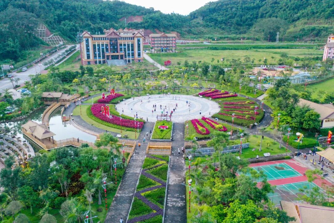 午后的勐梭镇东城区休闲公园,散步的居民三三两两并肩而行。广场中央,一群大妈随着动感音乐翩翩起舞,整齐的舞步与灿烂笑容交相辉映,演绎着对生活的热忱。高空俯瞰,蓄水池碧波荡漾,步行道串联起球场、广场,灯光照明与文化展板相映成趣,集防洪排涝、科普宣教、休闲观光于一体的综合生态公园,处处透着人文与生态的温度。
