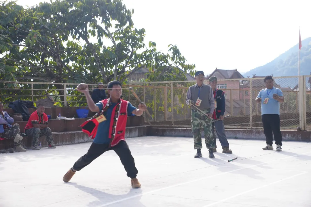 来自中课镇的年轻选手岩暖甩动长绳,陀螺应声腾起,又稳稳扎入地面,迅疾的旋转引来四周阵阵喝彩。“这可不只是游戏,”他擦去额角的汗珠,笑着说道,“以前我们过年,就爱以陀螺会友。旋转的陀螺就像年轮,转出一年的好彩头。”这场友谊赛并无严苛的胜负之分,唯有绳影飞扬间的默契呼应,和那份随着陀螺一同转动的欢腾与热情。