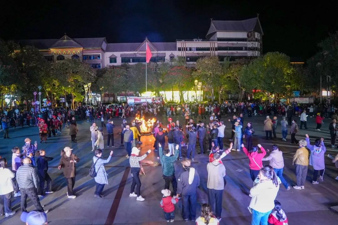 夜幕降临时,江三木洛广场的篝火冉冉升起,火焰映照下,打跳队伍不断壮大,男女老少齐参与,不分地域、不分彼此,手牵手围成的圆圈越扩越大,黑龙江游客于忠兴不由自主地加入其中。“第一次被这样的热情包围!”火光映着他的笑脸,“歌舞很精彩,打跳很欢乐,我索性更改了行程,要在西盟过完元旦再走。”