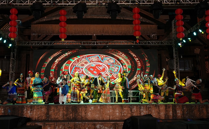 晚会在歌伴舞《佤山谣》中缓缓拉开帷幕。循着婉转悠扬的歌声,伴着灵动曼妙的舞姿,在场众人仿佛一同走进如诗如画的佤山秘境;佤部落片段《狩猎》,复刻佤族先民狩猎谋生的智慧与无畏,带观众沉浸式回望古老部族的豪迈风骨;佤族服饰秀《天绣佤锦》,以歌舞为媒、以织锦为韵,让观众在这场华美的视觉盛宴中,读懂佤族文化的璀璨瑰宝……一个个精彩绝伦的佤族传统节目轮番上演,让到场游客纷纷驻足喝彩、赞不绝口。