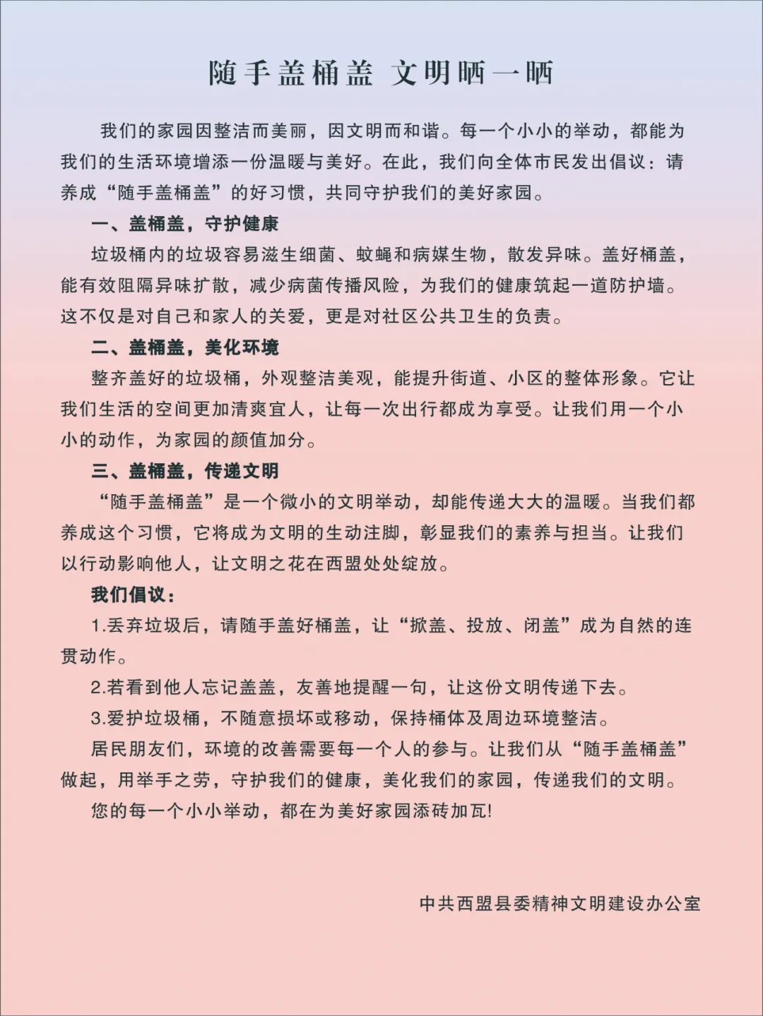 西盟是我家 美丽靠大家丨随手盖桶盖 文明晒一晒