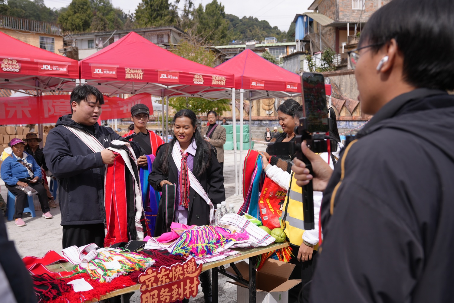 直播筹备阶段,一场充满烟火气的“农货集结”在现场温情上演。来自西盟县各乡镇的农户们,肩扛手提将自家精心培育的原生态产品送至直播点,饱满的山芋、香脆的核桃、鲜辣的生姜,还有承载着民族特色的手工织锦等好物齐聚一堂。工作人员有条不紊地开展挑拣、称重、登记、入库等工作,对每一份农货严格把关,确保呈现在网友面前的都是兼具品质与特色的西盟风味。