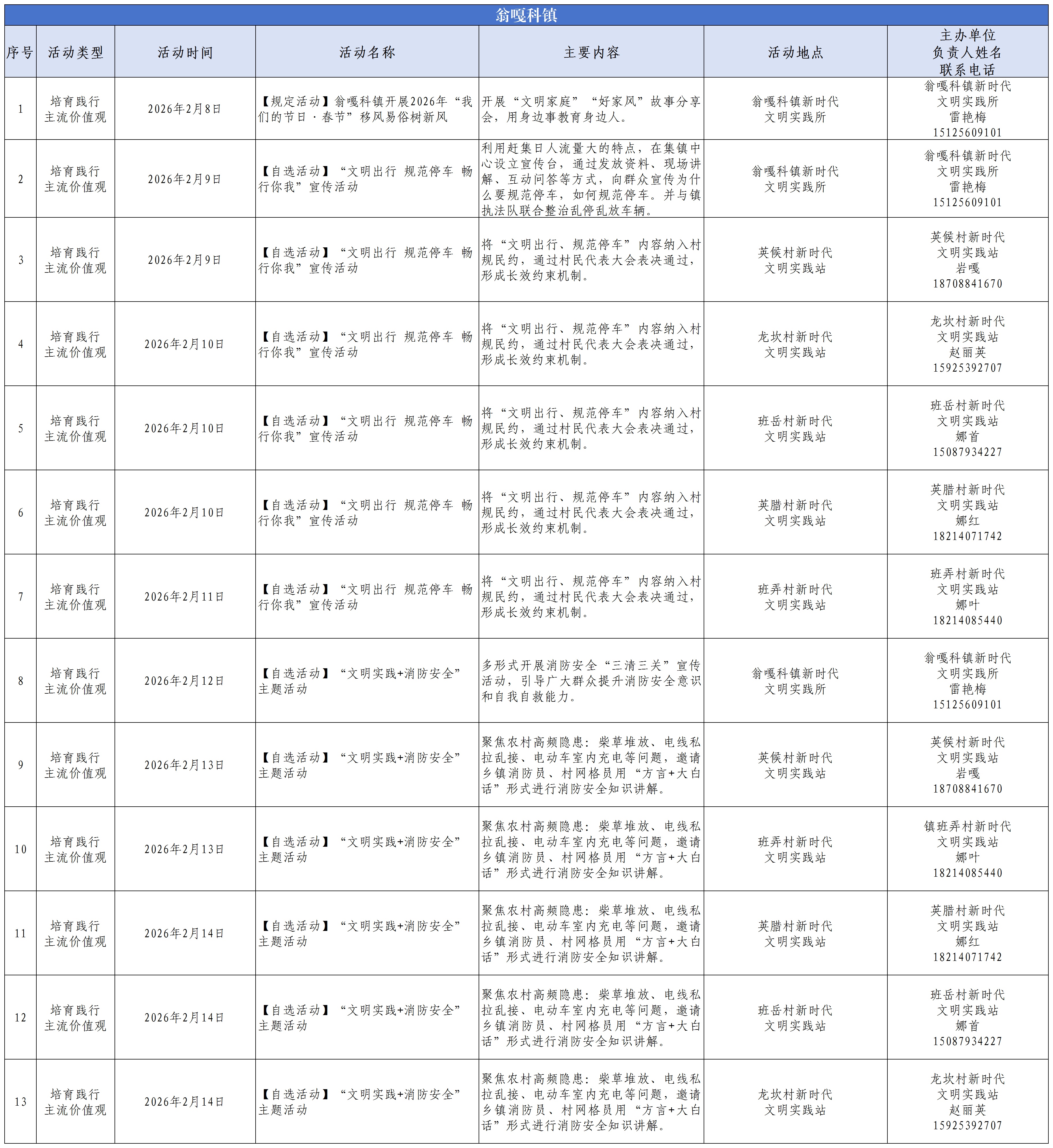 公示丨西盟县2026年2月新时代文明实践活动公示
