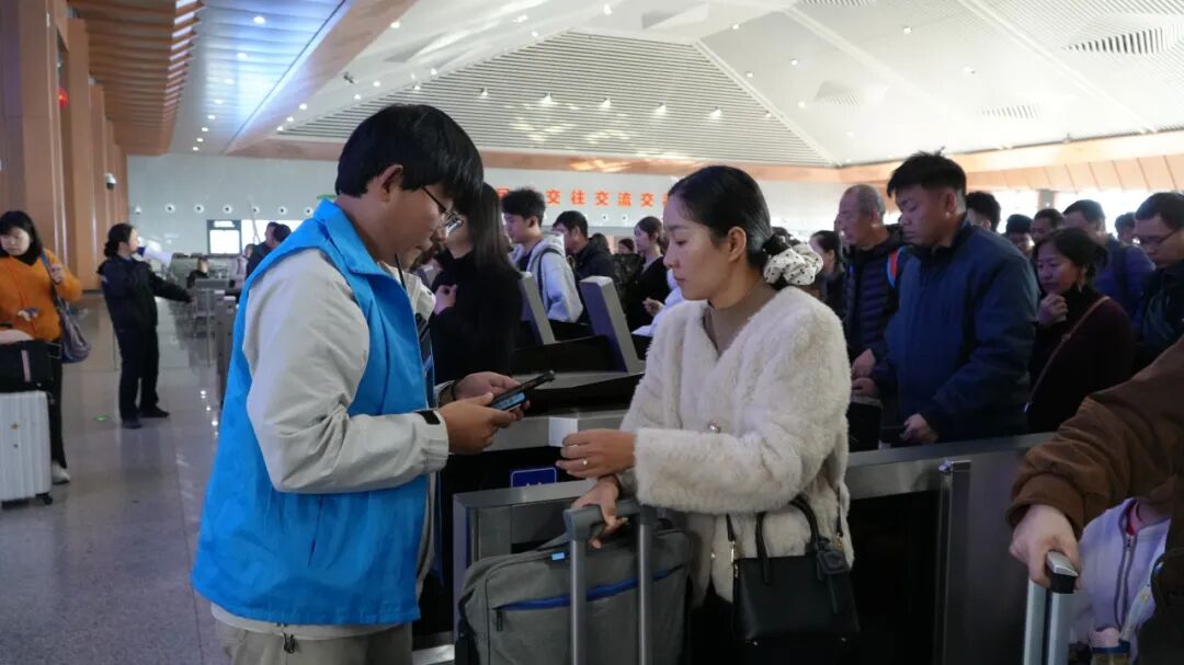 如果说精密的统筹规划是春运的“骨架”,那么一线工作人员的坚守付出就是春运的“血脉”。在售票窗口与候车大厅的穿梭中,记者见到了售票员兼客运员周香归,这位来自湖南的95后姑娘,已经在中老铁路工作了4个多年头。“我的日常工作就是售票、引导旅客乘车,帮助大家解决出行中遇到的各种问题。”周香归的脸上始终挂着亲切的笑容,说话间便转身搀扶着一位老年旅客走向爱心候车区。