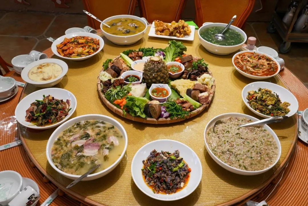 味香俱全的“窝朗宴”,是佤族最高礼仪的欢迎宴,作为西盟佤族最高规格的筵席,既是民族文化载体又充满家的味道,它汇聚了西盟各民族特色菜品。