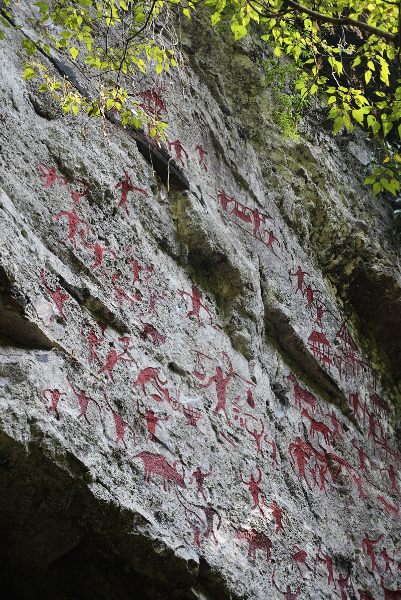崖壁上的千年赭红色崖画,在清
