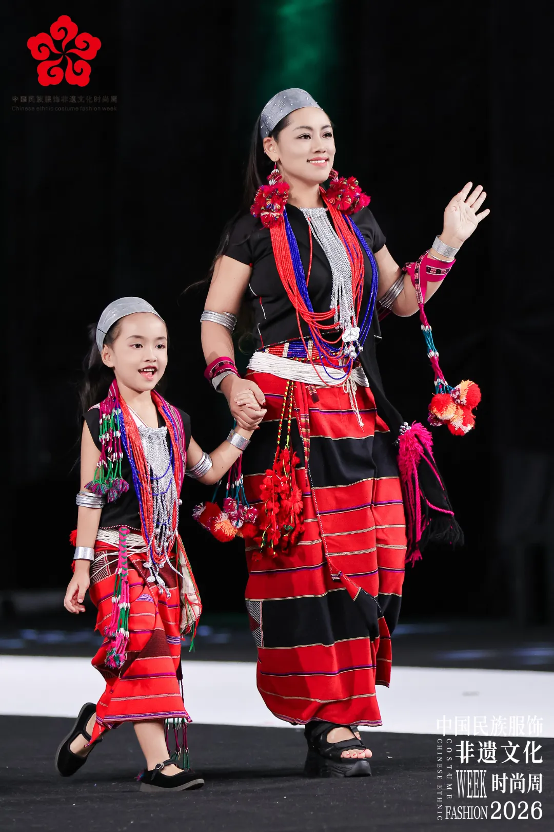 “带着女儿,也带着西盟佤族织锦,站在中国民族服饰非遗文化时尚周的舞台上,心里满是感动与敬畏。一针一线,是祖先留下来的智慧;一纹一色,是佤山深处的故事。能把这份来自西盟佤山的手艺带到国家级活动,让更多人看见佤族织锦的美,是我作为传承者最大的心愿,也是给女儿最深的根。希望她记住,这身衣服里藏着的,不只是花纹,更是一个民族的血脉与骄傲。”赵叶香感慨道。