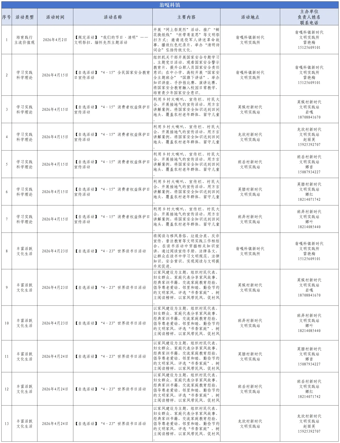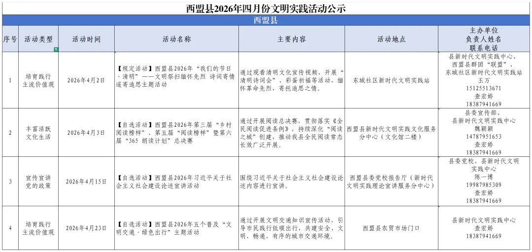 公示丨西盟县2026年4月新时代文明实践活动公示